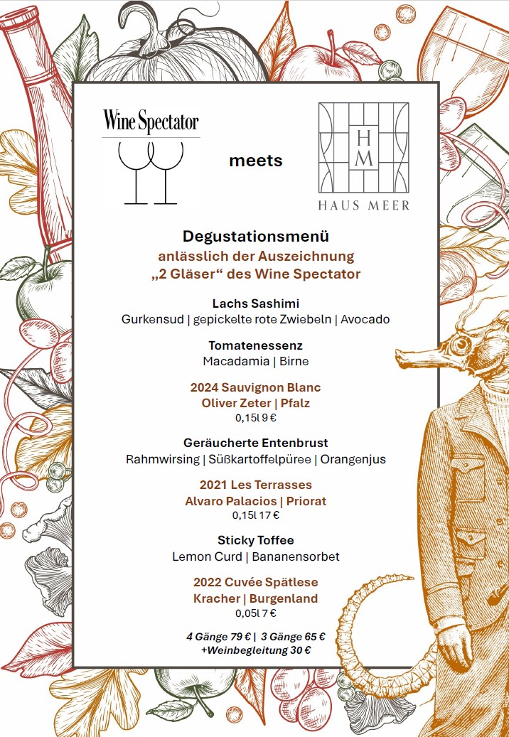 wir freuen uns riesig über die Auszeichnung mit dem 2.ten Glas durch den Wine Spectator 2025. Entdecken Sie unsere ausgezeichnete Weinkarte.