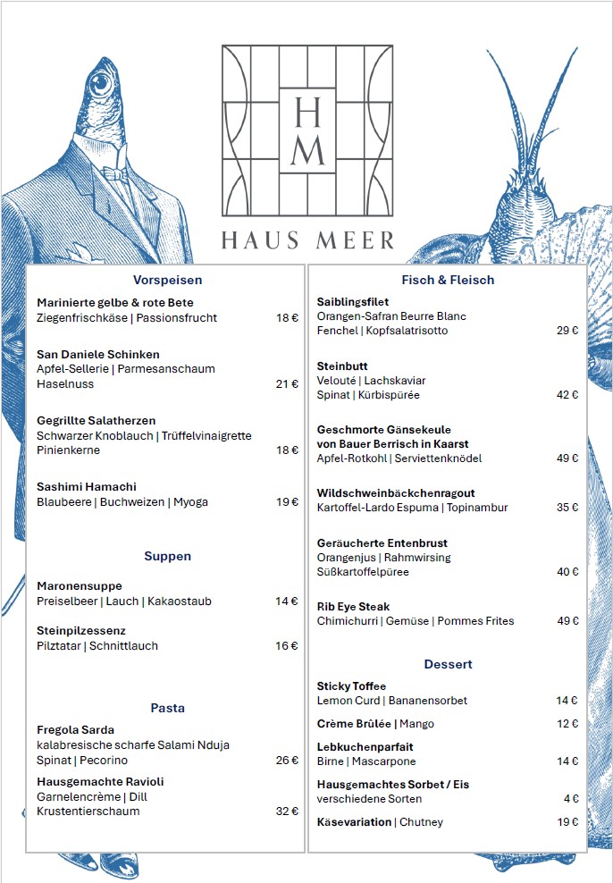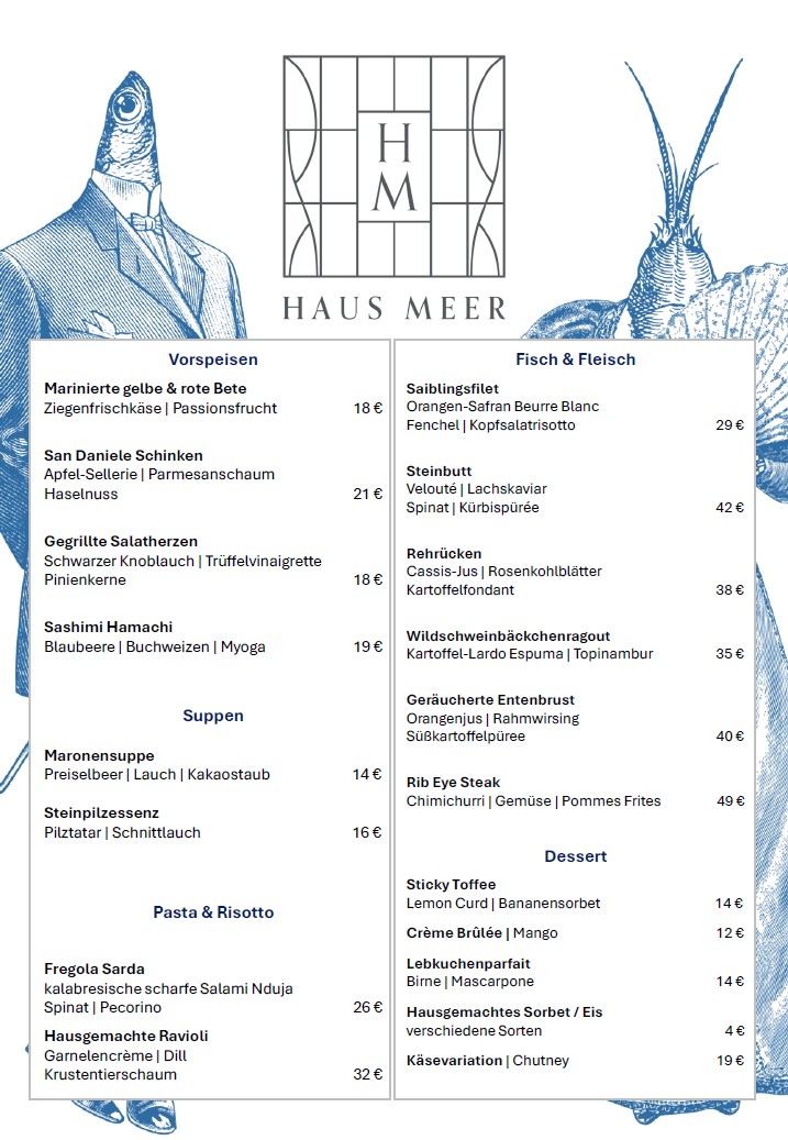 Lassen Sie sich von uns auf eine gastronomische Reise der Superlative entführen und erleben Sie den einzigartigen Zauber des Restaurants Haus Meer. Tauchen Sie ein in eine Welt, in der die Leidenschaft für kulinarische Kunstwerke auf höchstem Niveau zelebriert wird.